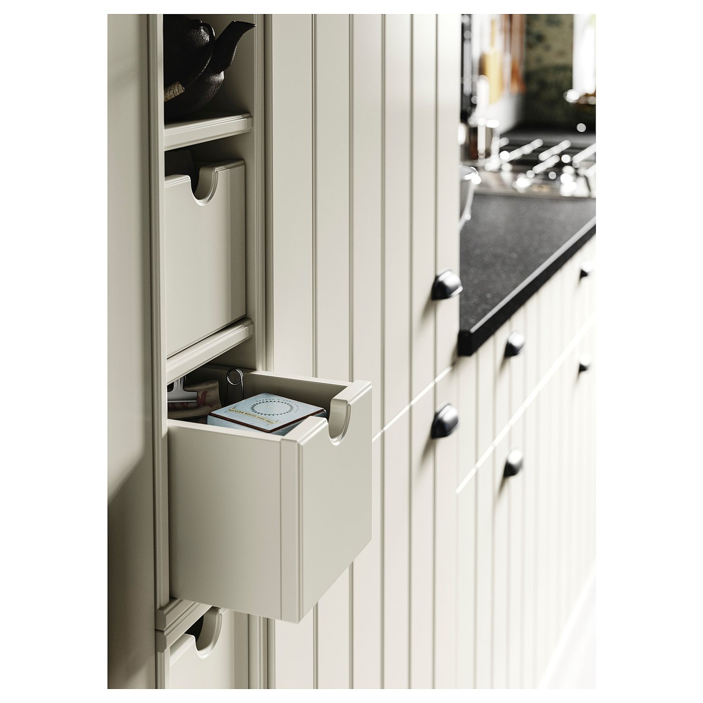 ملائم للخزانة المفتوحة TORNVIKEN. من السهل رؤية المحتويات والوصول إليها، لأن الصندوق يمكن سحبه بالكامل.