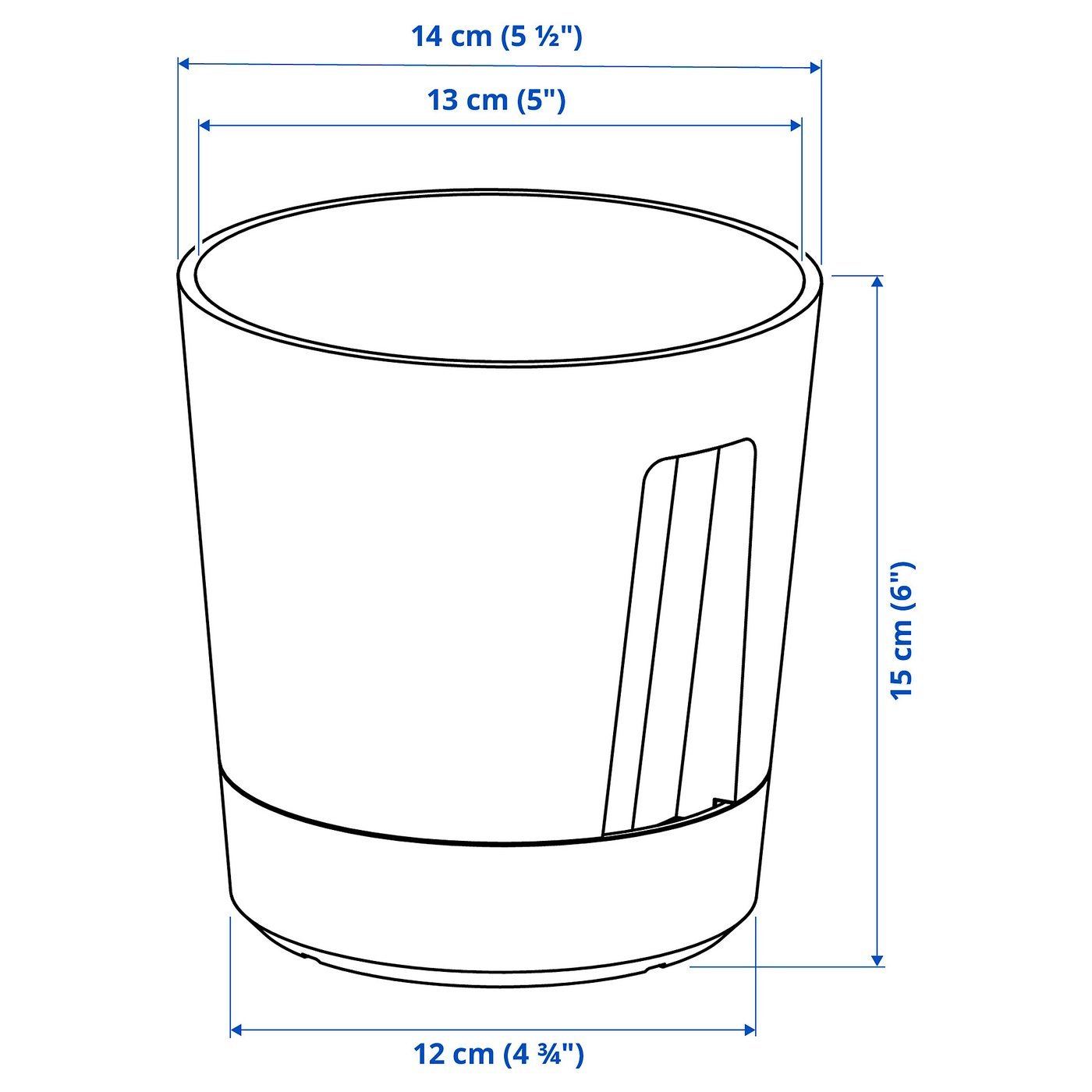 تتكون آنية النباتات من بلاستيك معاد تدويره بنسبة 20% على الأقل، ويتكون الصحن من 50% من البلاستيك المعاد تدويره على الأقل.