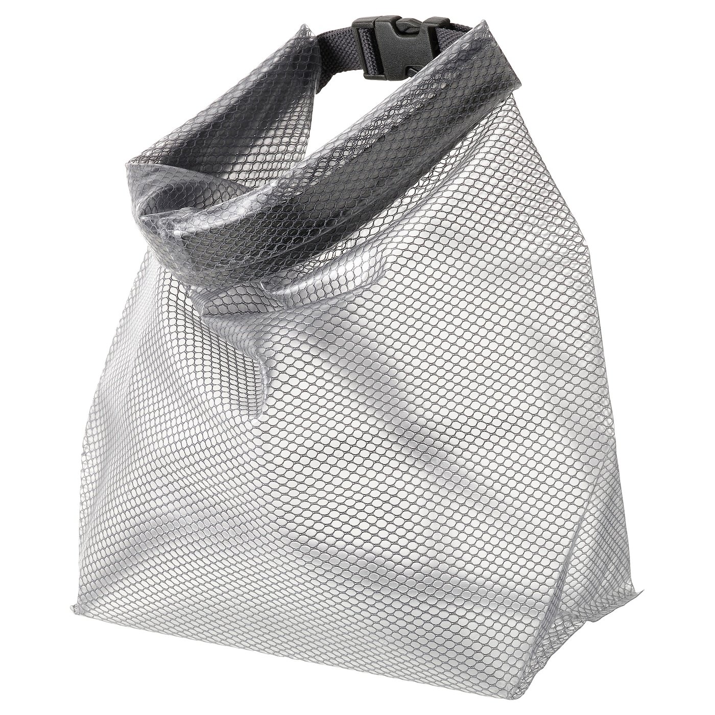 هذه الحقيبة مضادة للماء إذا قمتي بثني الحافة الأعلى 3 مرات وأغلقتي الحزام المنفصل.