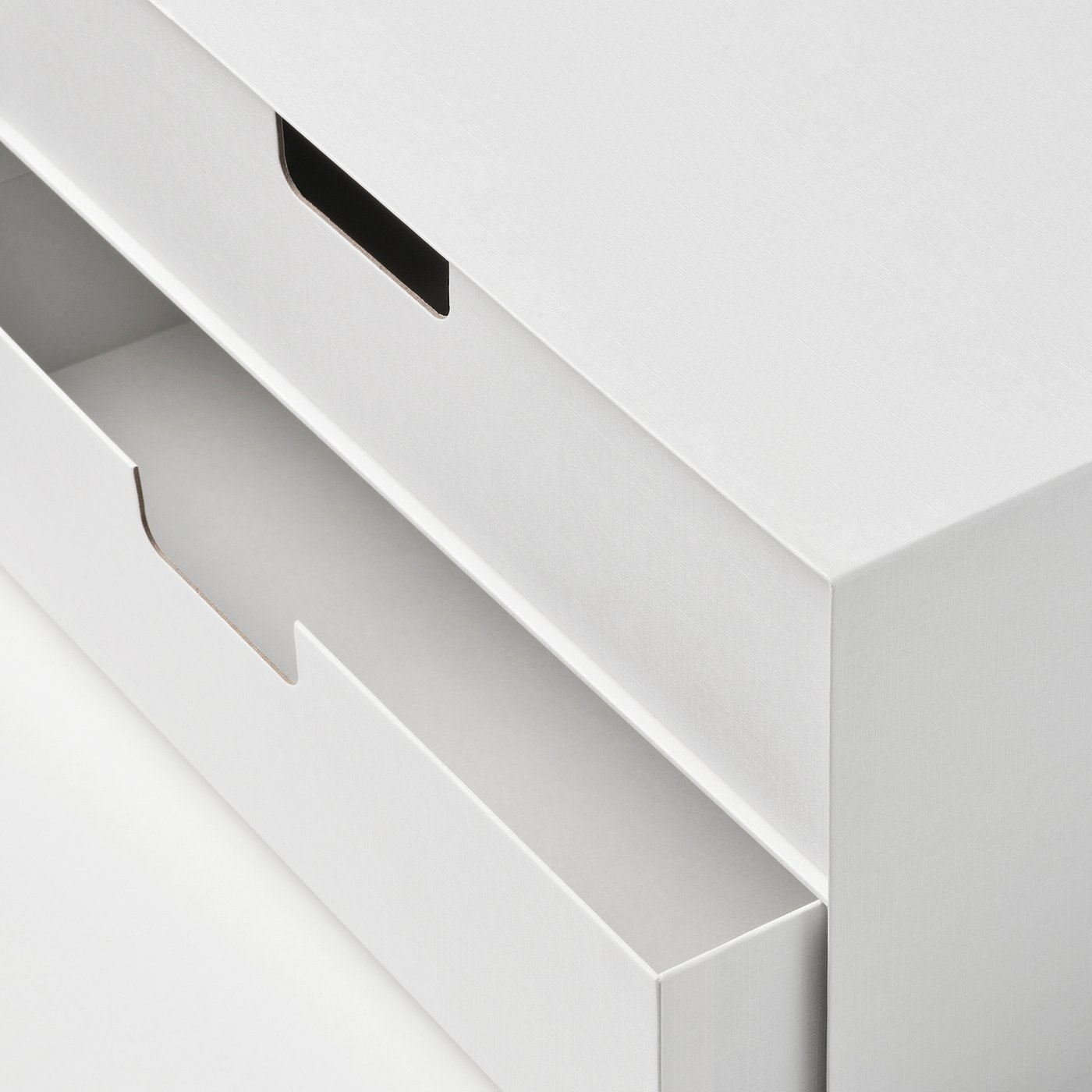 من السهل سحب الأدراج بفضل فتحة اليد في الواجهة، والفتحات الصغيرة في الخلف تمنع تشكل الفراغ.
