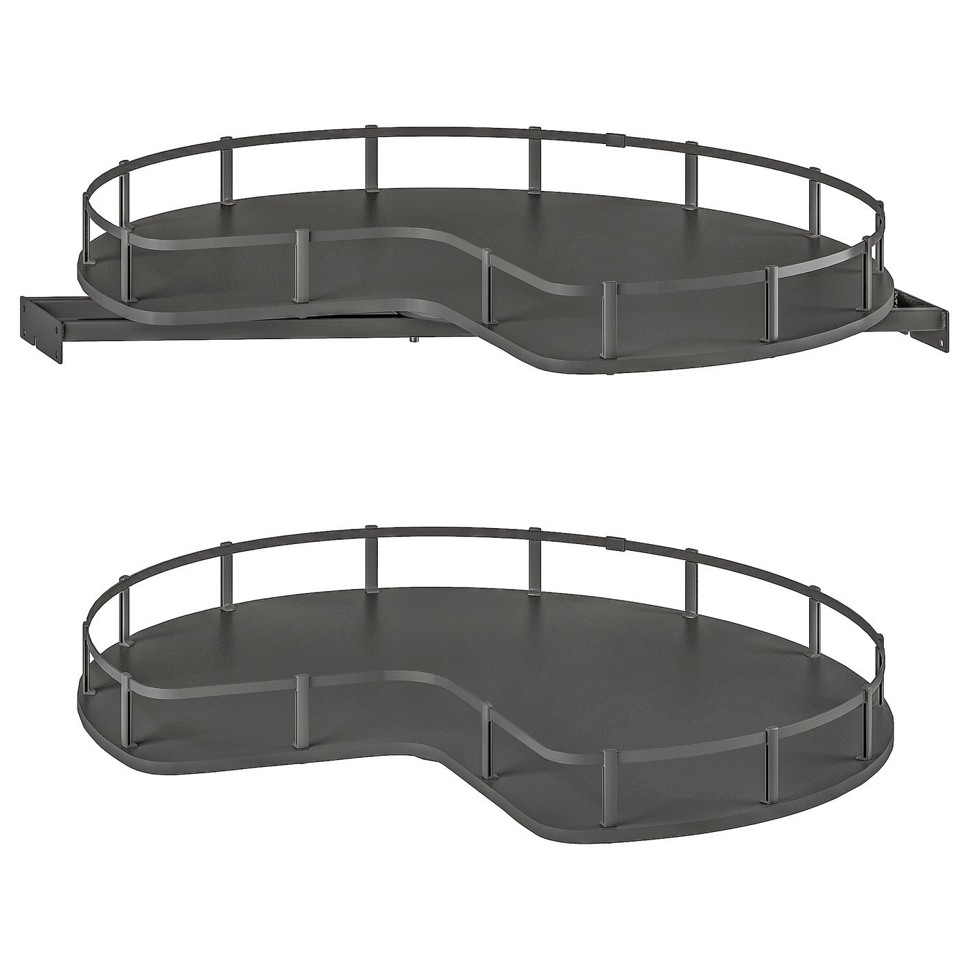 الرف الدوار المزود بصينيتين لا يحتوي على عمود أوسط، مما يساعد على الاستفادة القصوى من زوايا الخزانة ويسهّل رؤية محتوياتها والوصول إليها.
