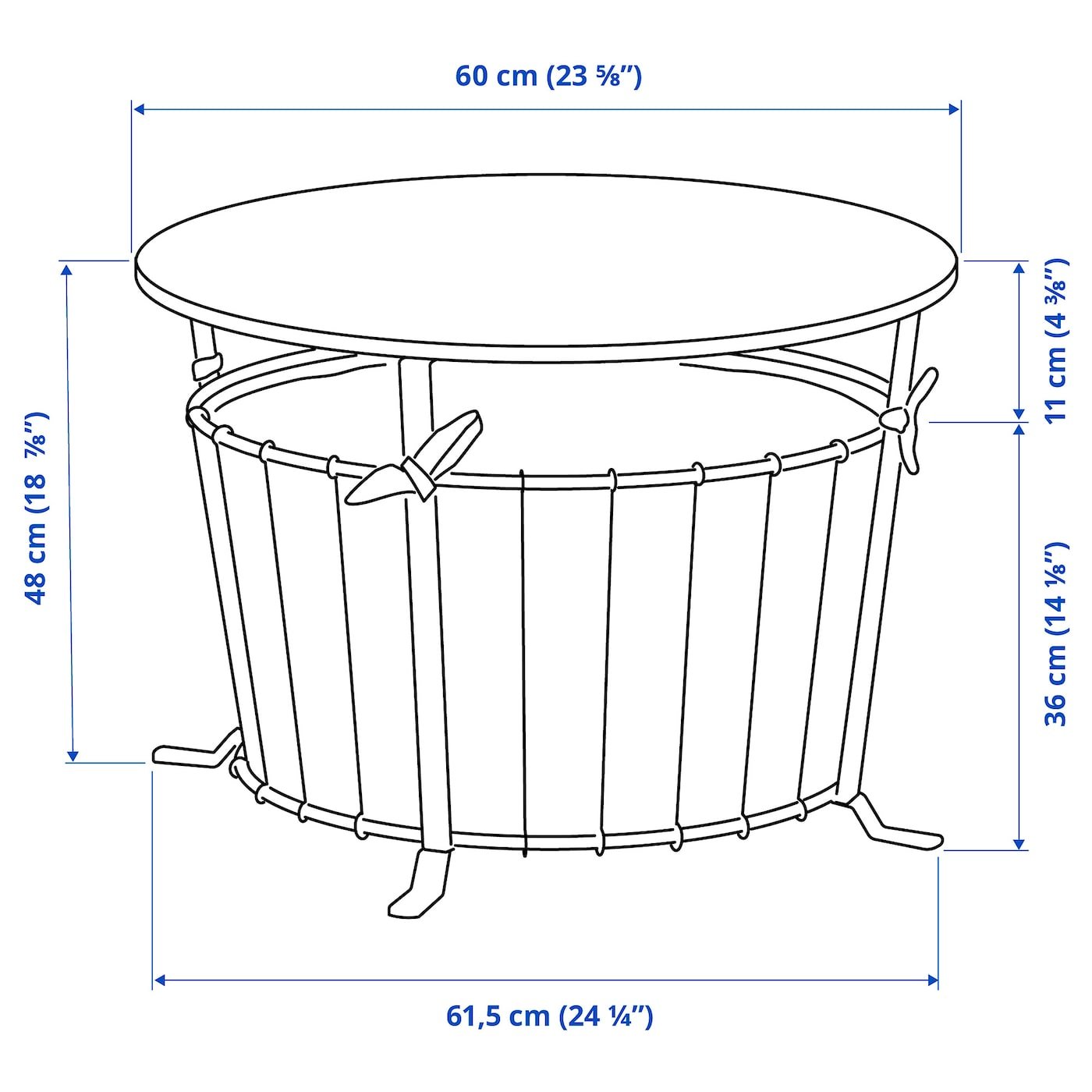 في طاولة التخزين ÄNGESBYN يمكنك تخزين كل شيء من الأغطية إلى الجرائد وأغراض الهوايات - وأي شيء تريدينه في متناول يدك.