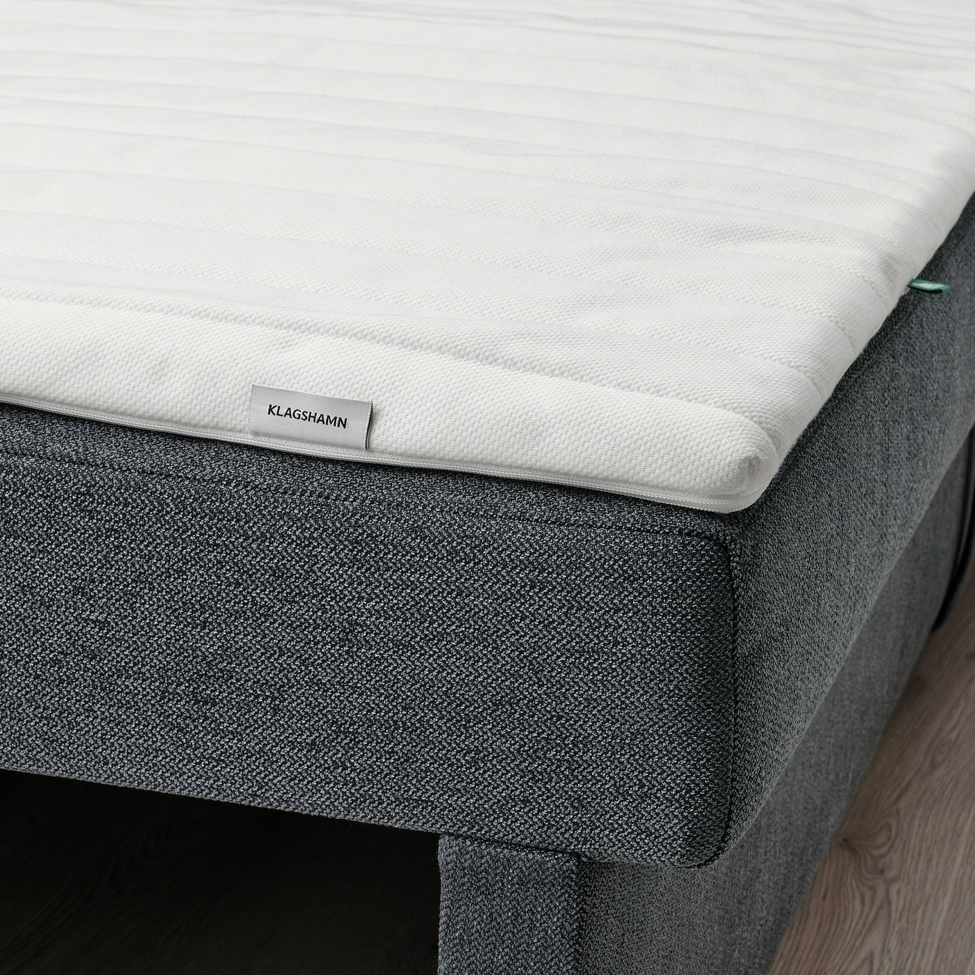 استكملي لبادة الفرشة KLAGSHAMN مع غطاء وسادة من نفس المجموعة. وبهذه الطريقة، يمكنك تحويل لبادة الفرشة إلى وسادة ظهر مريحة بوضعها داخل غطائها.