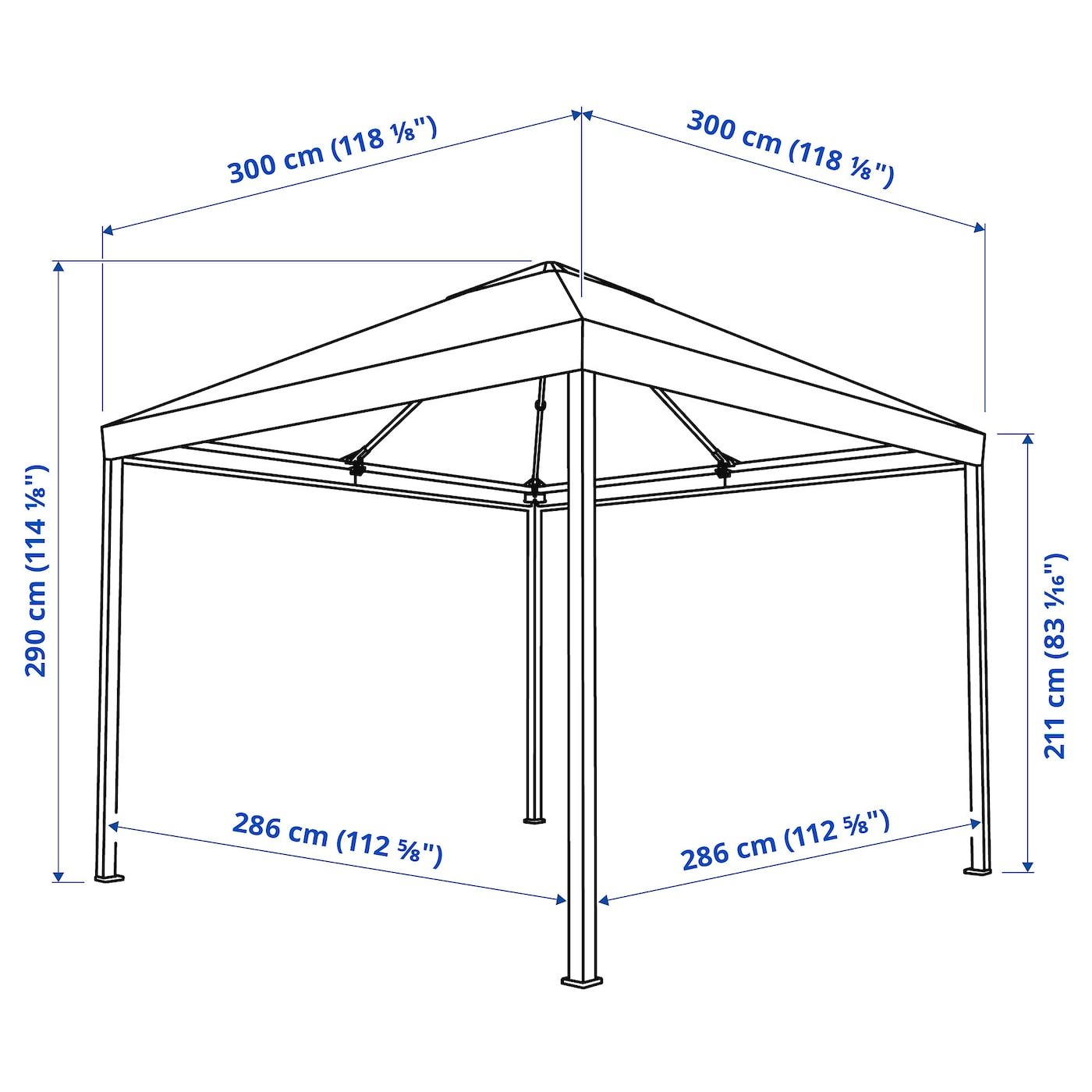 لتجنب إلحاق الضرر بالمظلة، ننصحك دائماً بإزالة سقف المظلة عند هطول أمطار غزيرة أو هبوب الرياح.