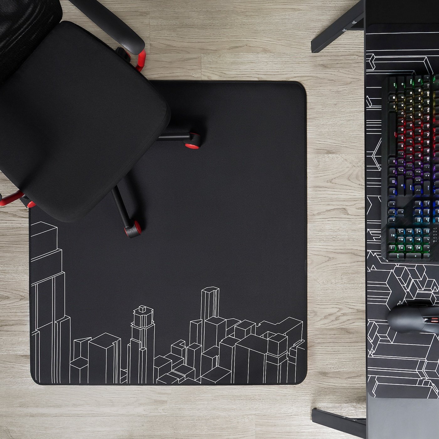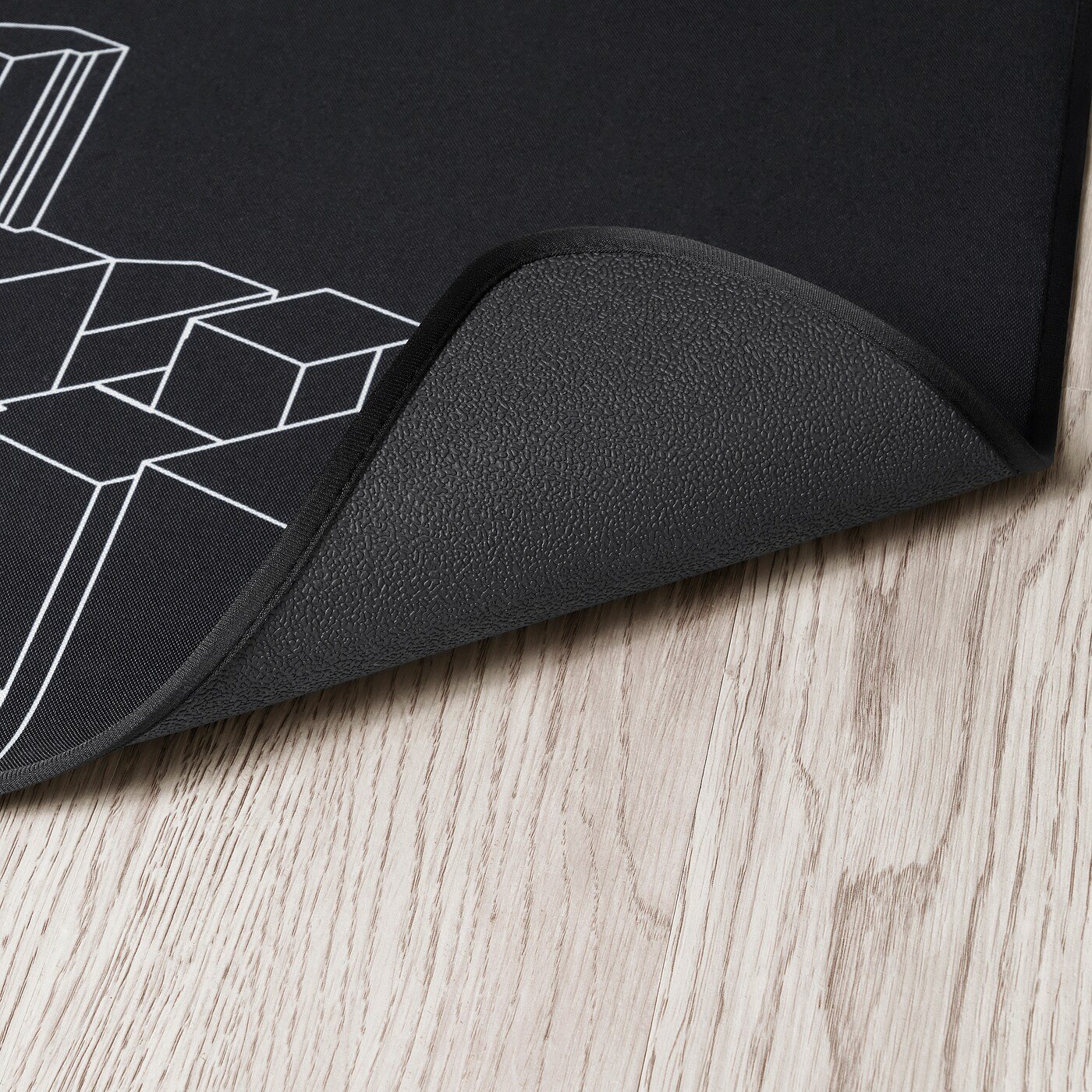 يضمن الجانب السفلي المغطى بالمطاط بقاء واقي الأرضية ثابتًا في مكانه ويسمح لعجلات كرسي اللعب بالدوران بهدوء وسلاسة.