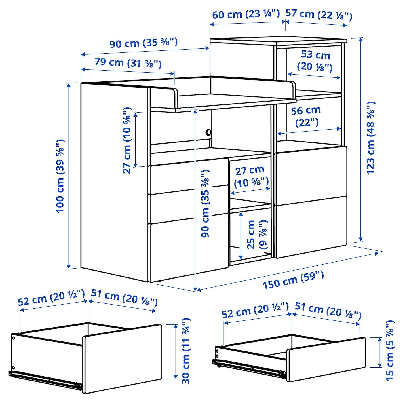 يمكن استكمال التشكيلة بأحد صناديقنا من ايكيا الأطفال لتنظيم التخزين من الداخل أو على الرفوف المفتوحة. يُباع على حدة.
