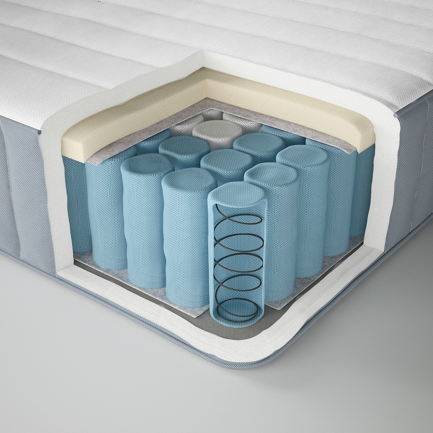 تسمح النوابض المغلّفة التي تغطي الفرشة بالكامل بالتهوية وتحسين دوران الهواء، وعند استخدام فرشتين بجانب بعضهما البعض، يظل مستوى الراحة والدعم ثابتاً دون تغيير.