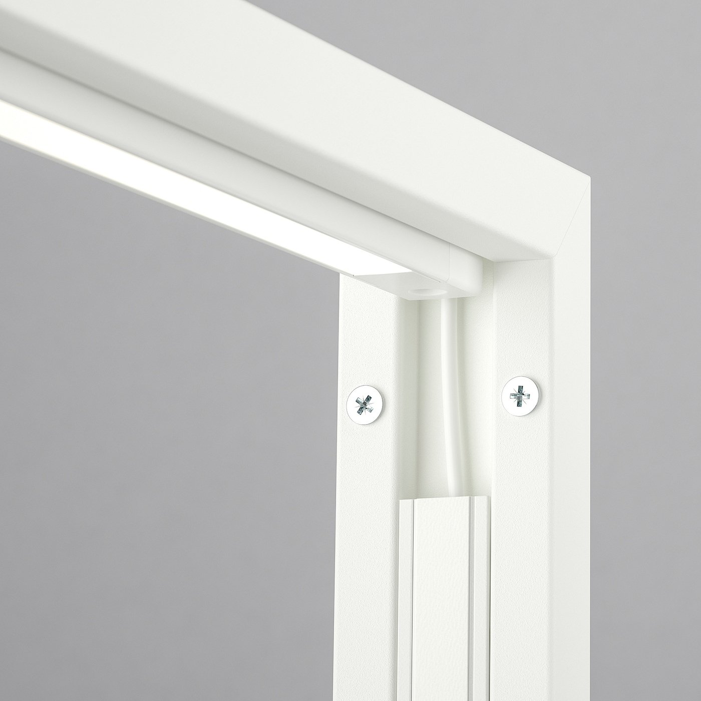 يمكن استكماله بشريط ليد سطح العمل/دولاب الملابس SKYDRAG LED قياس (80 سم) مع حساس وجهاز تعتيم الإضاءة اللاسلكي RODRET. يتم تمرير الأسلاك عبر الجزء الداخلي للإطار إلى صندوق الأسلاك ثم إلى المقبس.