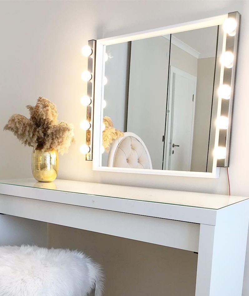 ممكن مع مرآة لون أبيض او اسود بقياس 65x65 سم