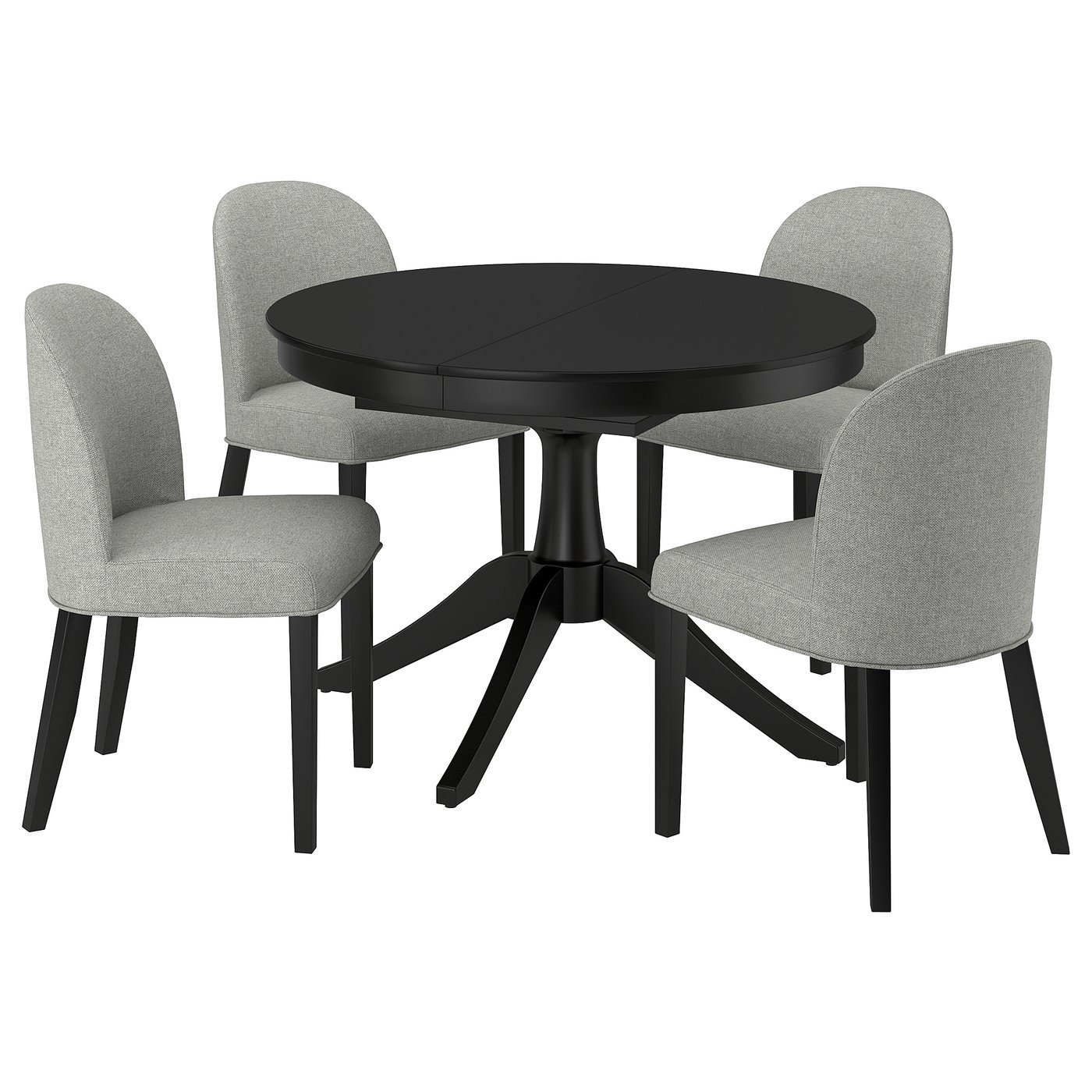 كرسي مريح بتنجيد كامل من قماش Tibbleby ذو اللون الرمادي-البيج، وهو قماش من البوليستر الناعم مصبوغ بالمحلول مع لمعان خفيف ونقش متعرج رائع.