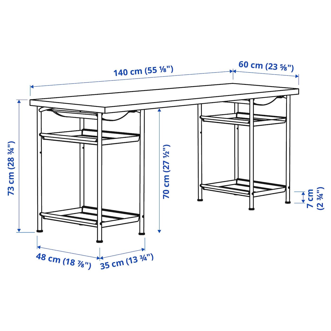LAGKAPTEN / SPÄND مكتب, أبيض/أسود, 140x60 سم