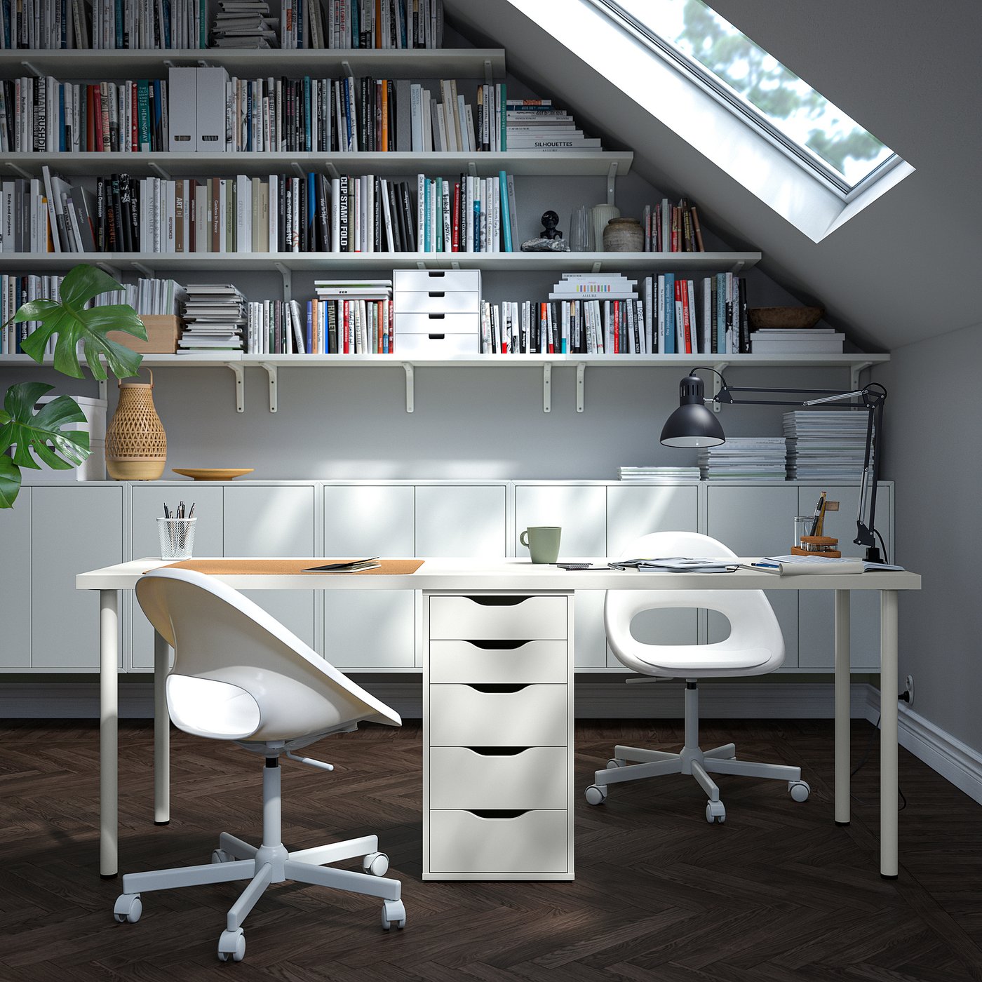 سطح طاولة: لوح مضغوط, طلاء أكريليك, حواف بلاستيكية, حشوة من ورق الكرتون المقوى (معاد التدوير بنسبة 70% على الأقل), خشب مضغوط, لوح مضغوط